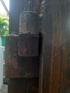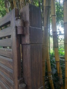 Uncategorized Elementor #710 by Juzer December 10, 2024 Gate fabricated in hollow metal sections and painted with brown paint and wood stain polish for a natural look and feel of wood. You can see the post has also been fabricated to appear like a wood post along with the hinges.