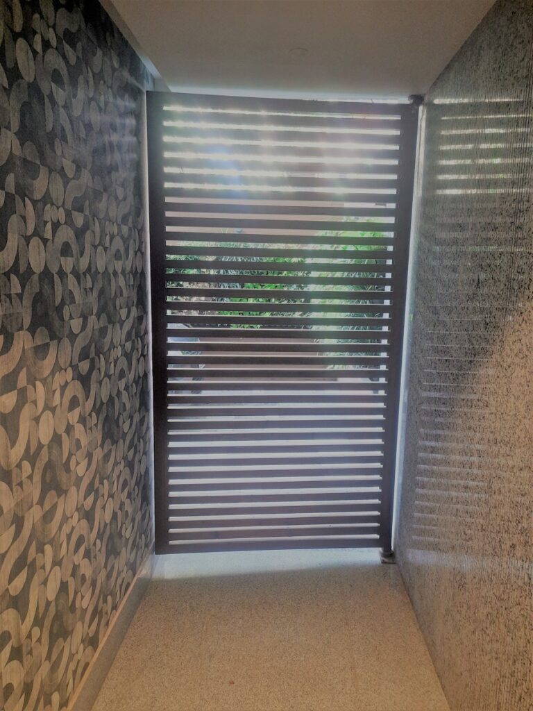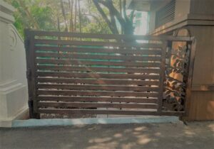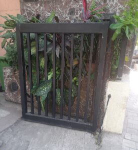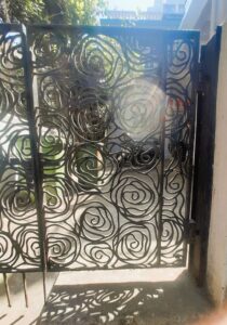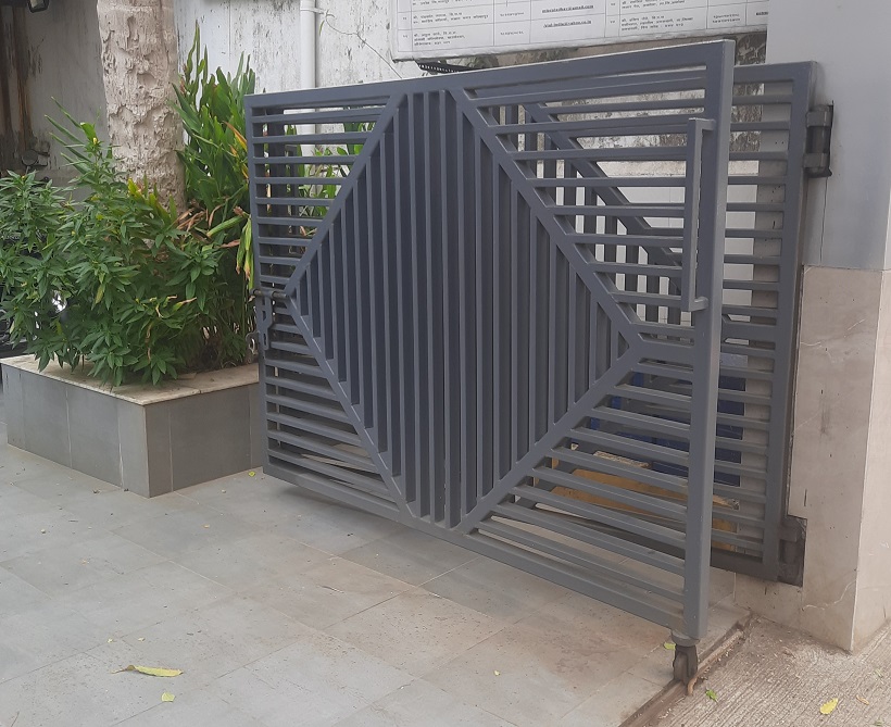 Stainless Steel Gates are fabricated using grade 304 or 316 which doesn’t rust. They can be buffed to a matte or glossy finish. The material cost is about 4 times that of regular mild steel, so the design is usually kept lightweight and hollow sections are preferred. The hardware fittings such as the aldrop and tower bolt are also made in SS.