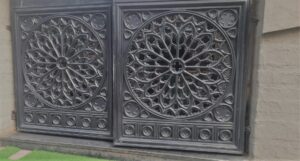 Gates made from cast iron can have an outer frame made from hollow MS sections or solid bars. The cast iron elements have to be integrated inside the design as per the size and kind of gate. Cast Iron is usually heavy in weight and brittle compared to mild steel; however there are a wide range of designs available.